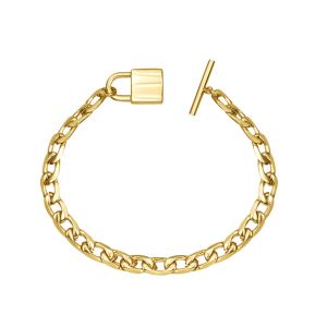 Pulsera eslabones y candado, de acero con baño de oro de 18 k. Longitud 20 cm. Tamaño candado 11 x 5 mm