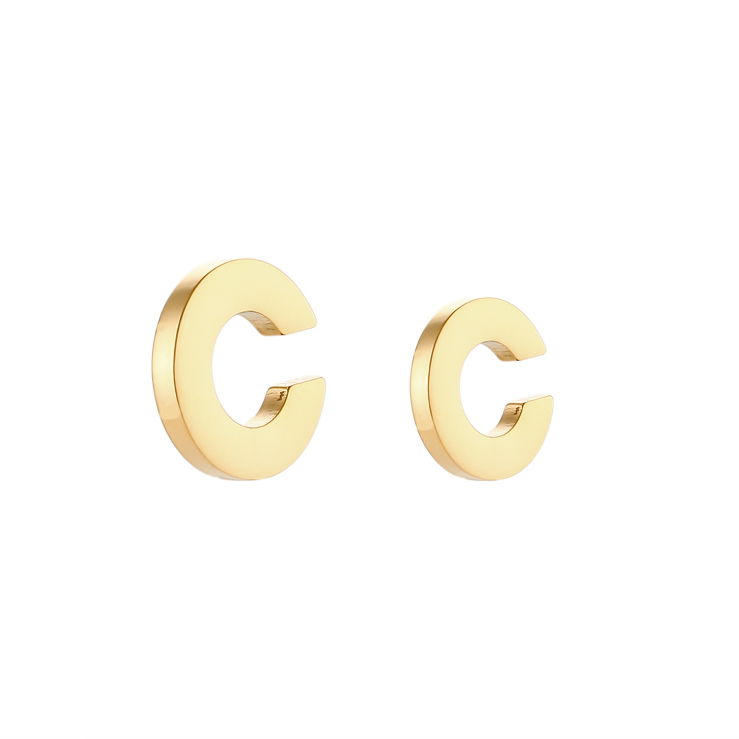 Par de earcuff de acero con baño de oro de 18k. Grosor: 5 * 3 mm y 4 * 3 mm. Espesor: 5 * 3 mm y 4 * 3 mm. Diámetro del aro Interior: 10 mm. Diámetro del aro Exterior: 20 mm y 17 mm