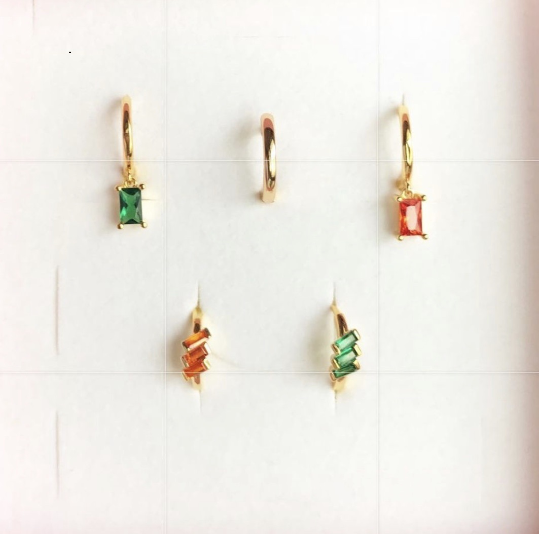 1 Aro de 12mm con 3 circonitas naranjas de 3x3mm en baguette diagonal de Plata de Ley 925 con baño de oro de 18k.